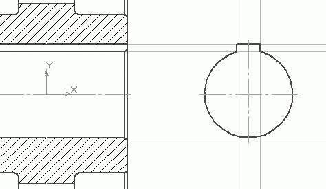 3. Немного правее от вставленного изображения постройте профиль отверстия в ступице, принимая, что глубина шпоночного паза при диаметре отверстия 85 мм равна 5, 4 мм, а ширина паза 20 мм. Отталкиваясь от профиля отверстия, отредактируйте сечение колеса, дорисовав шпоночный паз в разрезе (рис. 2.132).
